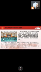 研究生第二党支部在线上开展了1月份的支部主题党日活动。此次活动的主要内容为学习“中央全面深化改革委员会第二十三次会议精神”、“中共湖北省委十一届十次全体会议决议精神”和“瓜子tv