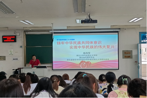 杨海军老师从中华民族多元一体的基本国情、民族团结进步事业的伟大成就、新时代党的民族工作高质量发展,铸牢新时代大学生中华民族共同体意识四个方面向同学们深刻阐释了中国共产党的民族政策。