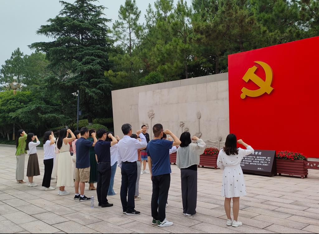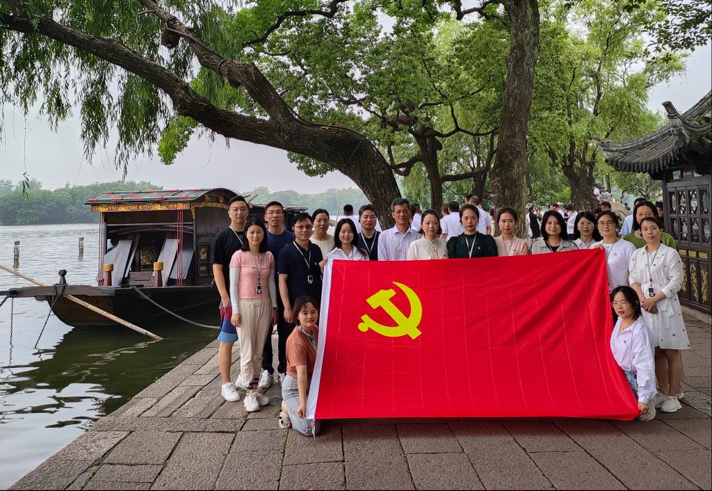 嘉兴南湖因中国共产党第一次全国代表大会在这里胜利闭幕而备受世人瞩目,是中国共产党诞生地。上午,教师党员首先赴嘉兴南湖瞻仰红船,随后参观了南湖革命纪念馆,深入学习了解了早期中国共产党人创建中国共产党的艰苦历史。最后,全体教师党员在南湖纪念馆宣誓墙前整齐列队,佩戴党员徽章,面向党旗,由教职工第三党支部书记李庆召和教职工第二党支部书记王昊分别带领大家重温入党誓词,庄严宣誓。