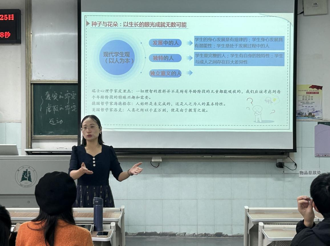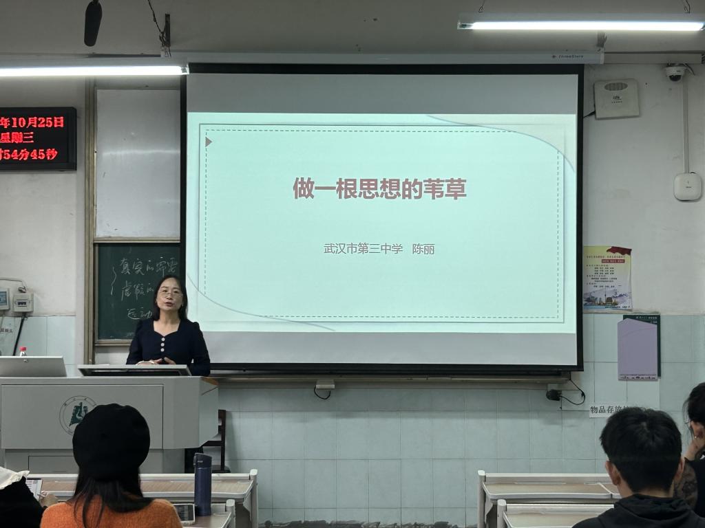 2022级学科教学(思政)研究生作题为“做一根思想的苇草”的专题讲座,给即将步入教师岗位的同学们传授实际教学经验。22级学科思政研究生全体同学参加此次讲座。讲座由程亚勤老师主持。