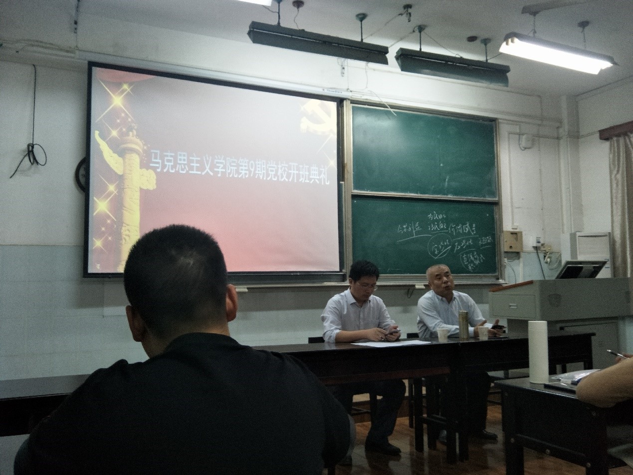 第9期党校开班典礼在教二210教室隆重举行,院党委书记、党校校长汤德森与院党委副书记、党校副校长王雄出席开班典礼,院党委副书记、党校副校长王雄主持开班典礼。