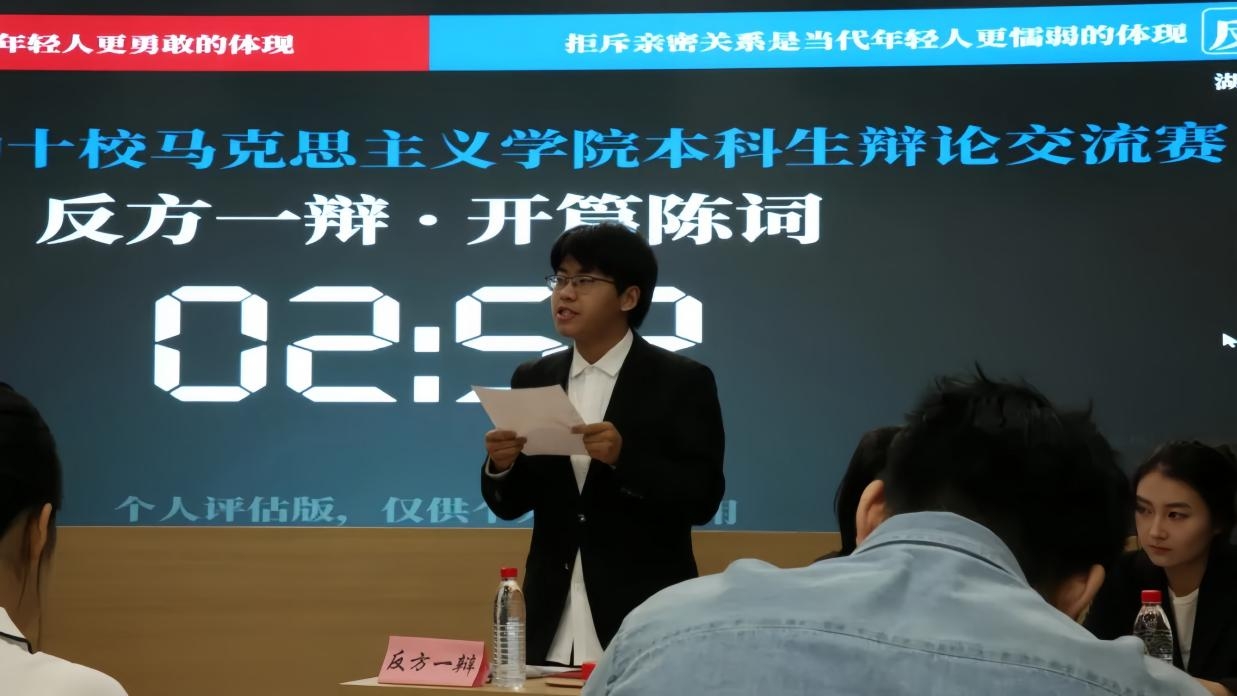 辩论队就“拒斥亲密关系是当代年轻人更勇敢/更懦弱的表现”的辩题展开激烈对决,最终以5∶0的击败对手荣获季军。