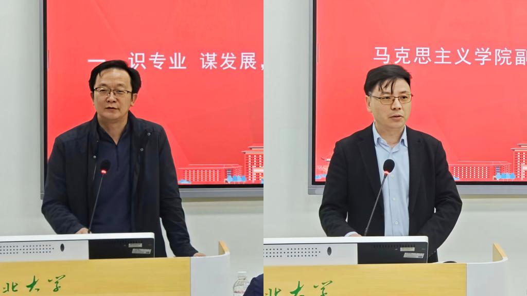 在师资、学科、学风等方面的雄厚实力。他指出,马院是英才汇聚的沃土、青春绽放的舞台,更是学子追逐梦想的起点,肩负着培育时代新人的重任。他寄语新生坚守初心,以“向上向善、求真尚礼、善思追远”为镜,勤学笃行,努力成长为“立大志、明大德、成大才、担大任”的栋梁之才。