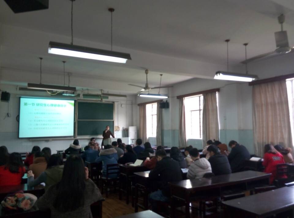 讲座上,张老师分别从研究生心理健康状况、研究生心理自我调适、心理问题的自我识别和走出误区走进心理咨询四个方面进行了具体详细地讲解。她通过PPT、视频形式,结合身边实例,详细地讲解了研究生学习方式的转变、职业生涯的规划、人际关系的挑战、情感问题的干扰和调整情绪的方法等问题,并提出相关建议和意见。她还针学生常见的心理问题进行了深入的剖析,尤其向大家阐释说明了抑郁症和强迫症的表现及原因,并提出解决办法。张老师的讲解深入浅出,鞭辟入里,幽默诙谐,在场的同学们认真聆听,热情饱满,掌声不断。
