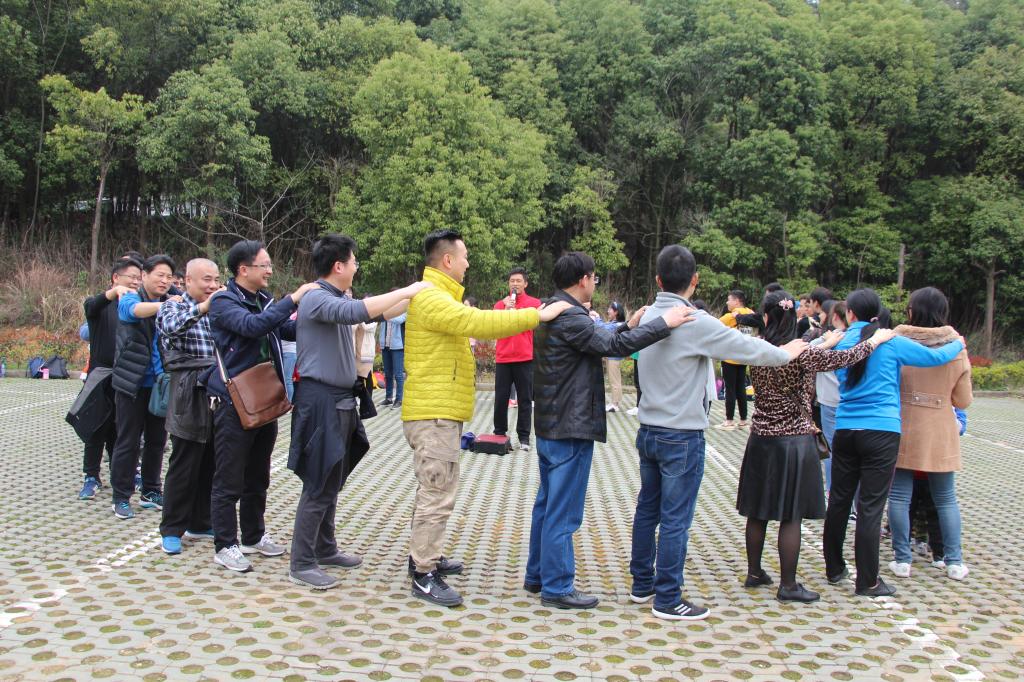 此次活动分为三个环节,第一环节为准备活动,在教练的带领下,老师与同学们手拉手形成一个大圆圈,并按照教练的指挥,做出相应的动作,气氛也随之活跃起来。第二环节为三个有趣特别的合作竞技项目,教官先利用报数的方式将全体成员随机的分成了四组,并选出队长和队秘,紧接着,让团队成员合作为各自队伍设计有创意的队名、口号、队歌和队徽。在各个团队成员的共同努力下,冠军队、炎黄队、湖大第三交通委队、改革春风队等新颖独特的团队名诞生。随后,各个团队的成员相互配合,共同努力地完成了巨人的脚步、鼓动人心和砥砺前行等游戏。两人三足可能对某些成员来说小菜一碟,但当一整个团队,十多名成员的脚绑在一起时,大家的脚步便“沉重”起来,但是在多次尝试与团队成员的共同探索下,各团队终于找到规律并完成了比赛,有的团队甚至还能默契的“跑”起来。在紧张却又充满乐趣的合作竞技项目后,进入到最后一个环节——爬山运动,在教练带领下,老师与学生们一同爬山,体验了爬山的“苦”与“乐”。
