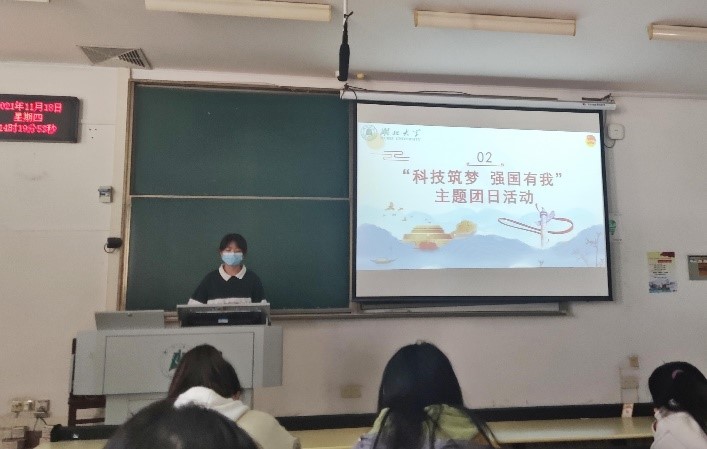 思想政治教育1901班在教三402教室举行了以“科技逐梦,强国有我”为主题的主题团日活动,本次团日活动由组织委员曾馨主持。