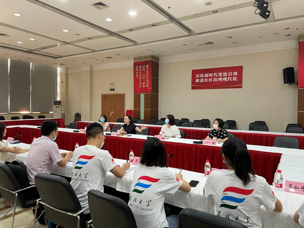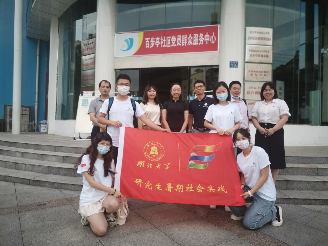 研究生暑期实践活动团队赴武汉市百步亭社区开展“社区治理能力现状及提升对策”研究。团队成员有李辰、高娟、蔡如丹、陈婧和胡庆梅。