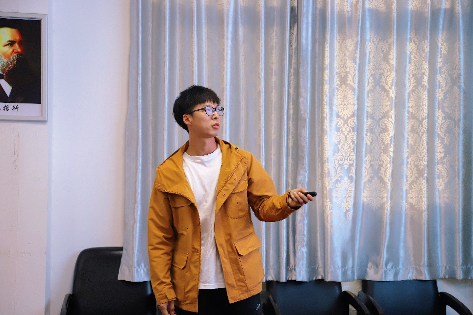 会议第二项议程,由付江宏、张婵鹄、熊章程、黄飞鸿、李玮洁、冯秋月、王晓凤、周文茜和彭港9名同学依次进行个人工作汇报。各汇报人分别从工作内容、工作成果、成绩荣誉和总结体会四个方面总结自己2020年度的工作情况。其中,宣传部付江宏、彭港采用数据、图表的形式直观地展示了宣传部门的工作内容以及成绩;文体部周文茜、冯秋月在汇报中说,从参与研会工作中得到成长,感受到马院一家亲的温暖;学术部张婵鹄、李玮洁致力于策划学术型活动,活跃瓜子tv