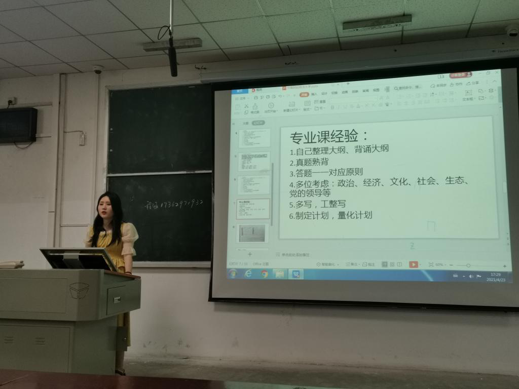 2021年4月23日下午,思想政治教育1901班在教四603开展主题为学风班会,班会由团支部书记周慧主持,全班75名同学均参加了班会。