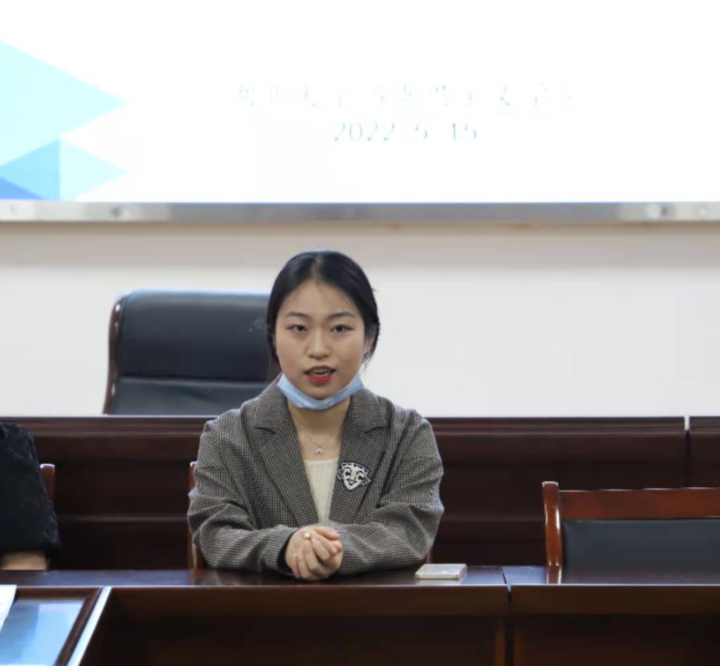 思政2001班组织委员杜越同学作为学生代表发言,她表示思政2001班的同学积极上进,学习刻苦努力,踊跃参加活动,希望能够在未来更多与校务助理进行联系,多沟通交流、学习更多优秀品质。