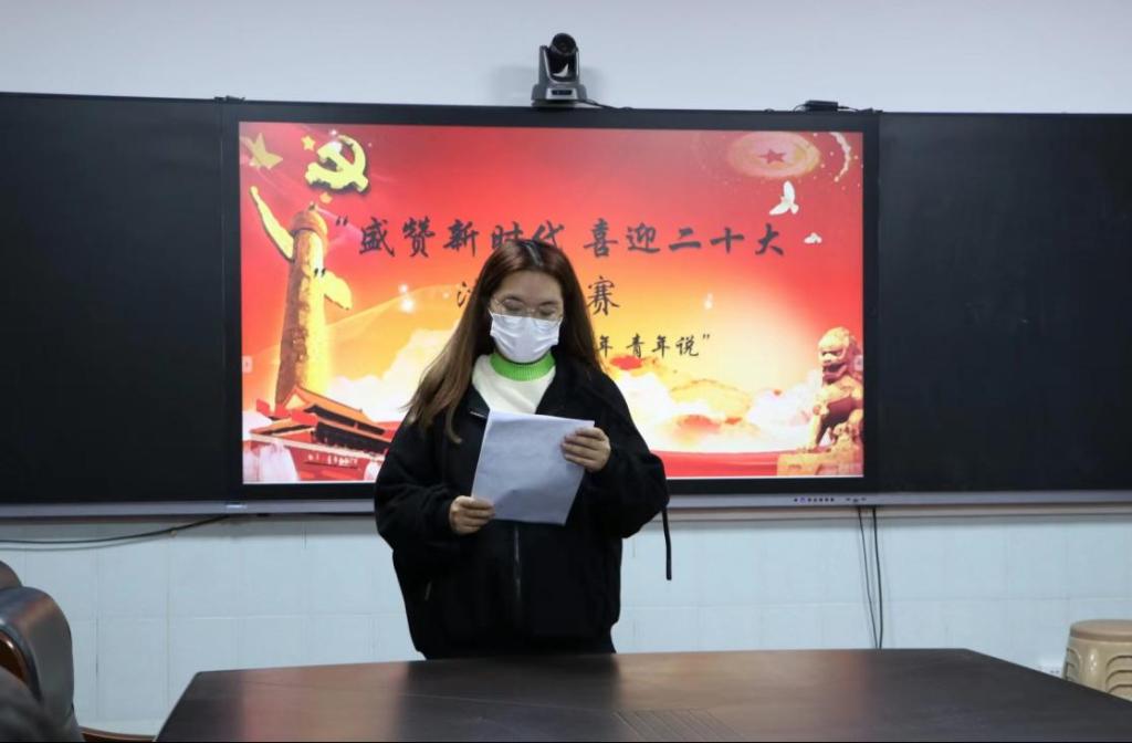 吴金玺、邓明伟等五名同学带领团队参加比赛。选手们围绕着“盛赞新时代,喜迎二十大,筑梦新征程”这一主题,结合自身实际进行了演讲。吴金玺团队结合我国航天事业的发展历程,着重介绍了航天员王亚平的事迹,在展现中国航天事业发展宏图的同时,更展现了中国当代青年积极向上、锐意进取的人生态度。