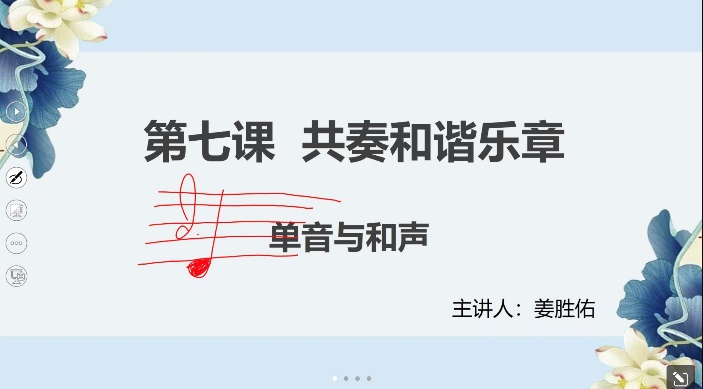 5月16日14:30,2021级学科教学(思政)姜胜佑主讲七年级下册第三单元第七课第一框《单音与和声》。教学选取《家有儿女》里面关于校服话题的讨论片段,用影视素材调动学生的学习兴趣,并采取一案到底的形式贯穿整个课堂,教学思路明了。课堂中运用大量音乐素材,将音乐资源融入课堂之中,课堂气氛活泼,节奏适宜,课堂教学效果明显,教学方式值得同学们学习。