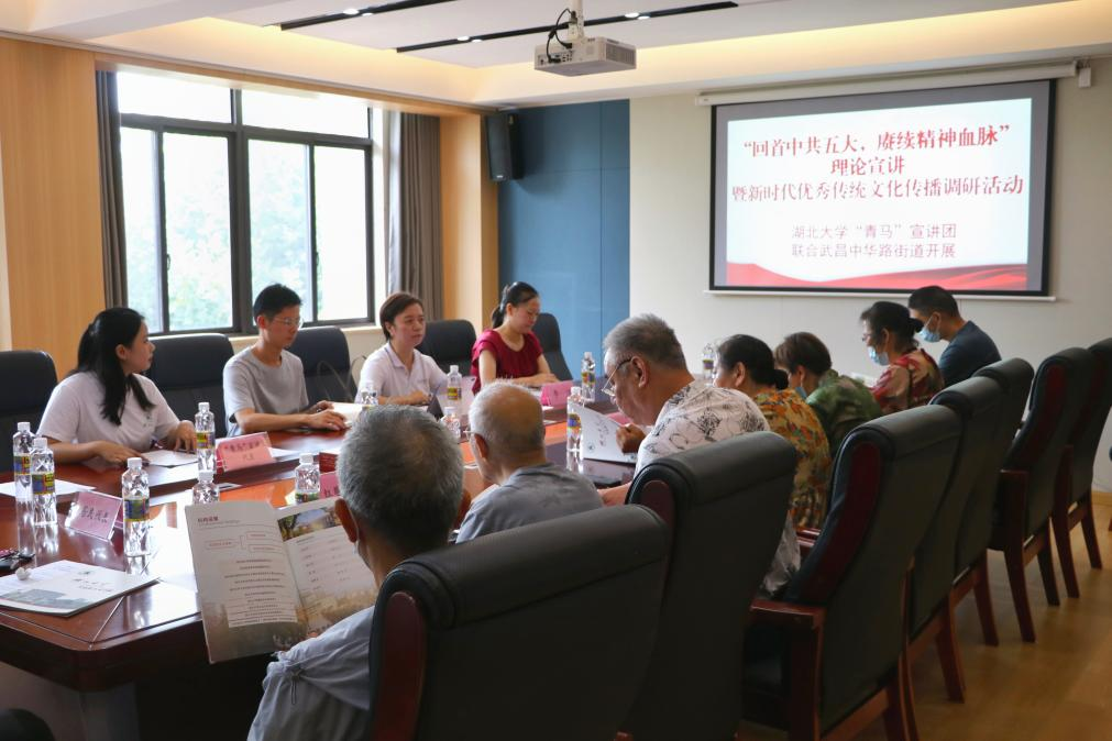 “青马”宣讲团6位成员赴中华路街道都府堤社区交流座谈。中华路街道办党建办公室科长李洁,户部巷、楚才、西城壕、都府堤四个社区相关负责人、“红巷爷爷”代表、都府堤社区居民代表、瓜子tv