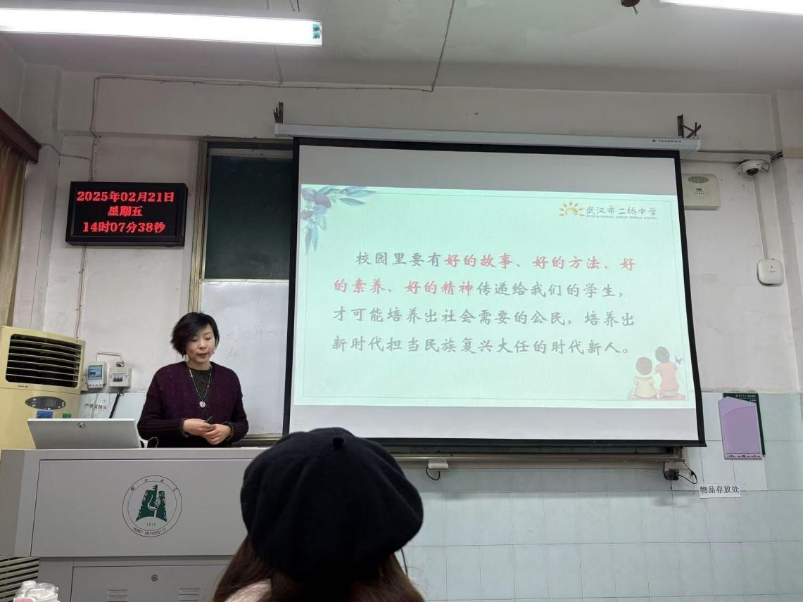 学科教学(思政)双师课堂第一期顺利开展,湖北省科研先进个人、武汉市学科带头人,二桥中学张婷婷老师为 2024级学科教学(思政)研究生全体同学主讲“打牢铸魂育人根基落实核心素养培养”专题。