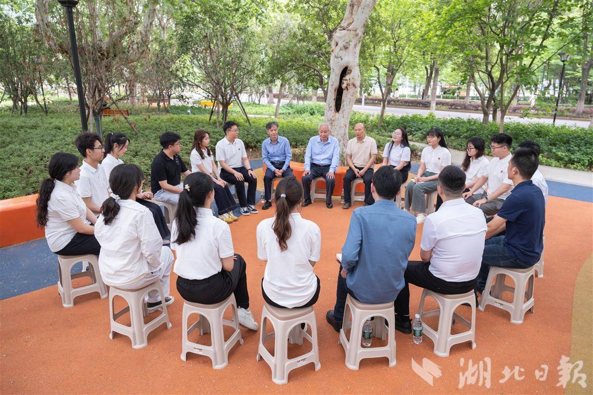 表彰大会现场,田子渝、徐方平、徐信华到场观看演出,并在演出结束后与十余名青年大学生对话,交流对《使命》的感受。田子渝分享了自己受恽代英、李汉俊等革命先辈的精神感召,从而开启学术研究的经历。“人生的道路上,职业选择或许会发生变化,但内心深处的信仰绝不能动摇。”在这个五四青年节,他寄语青年学生。