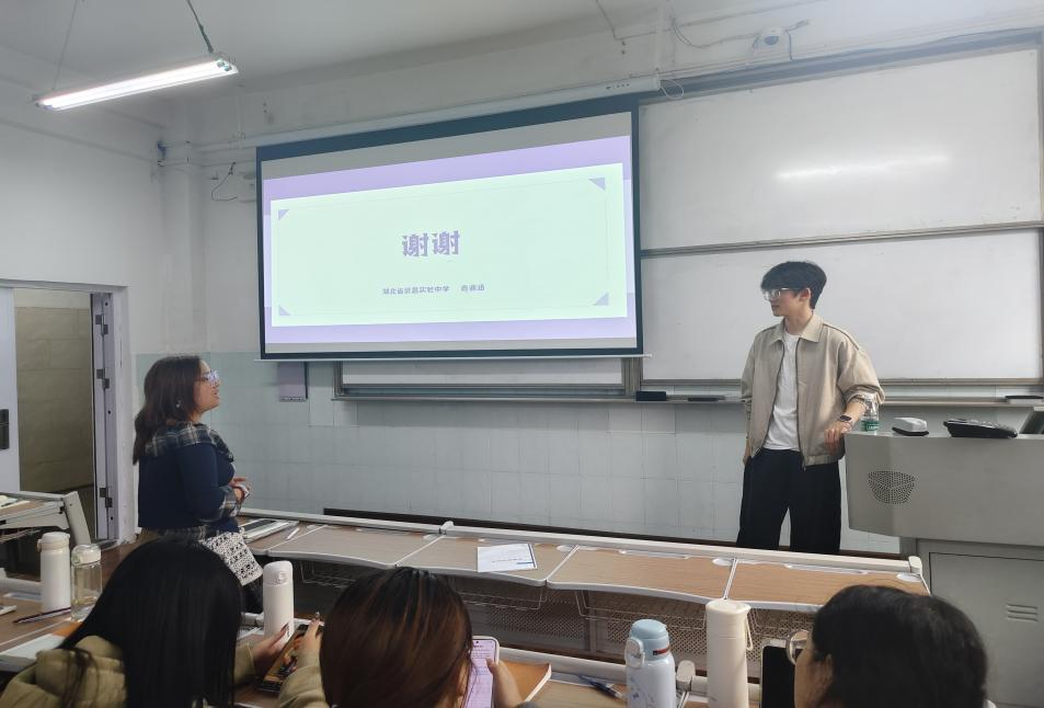 2022级研究生学长肖迪涵受邀返校,为2023级本科生开展优秀教师成长专题讲座。他以“讲课不‘翻车’指南”为主题,从内容、选题、备课等维度分享教学心得,助力师范生筑牢教学基本功。