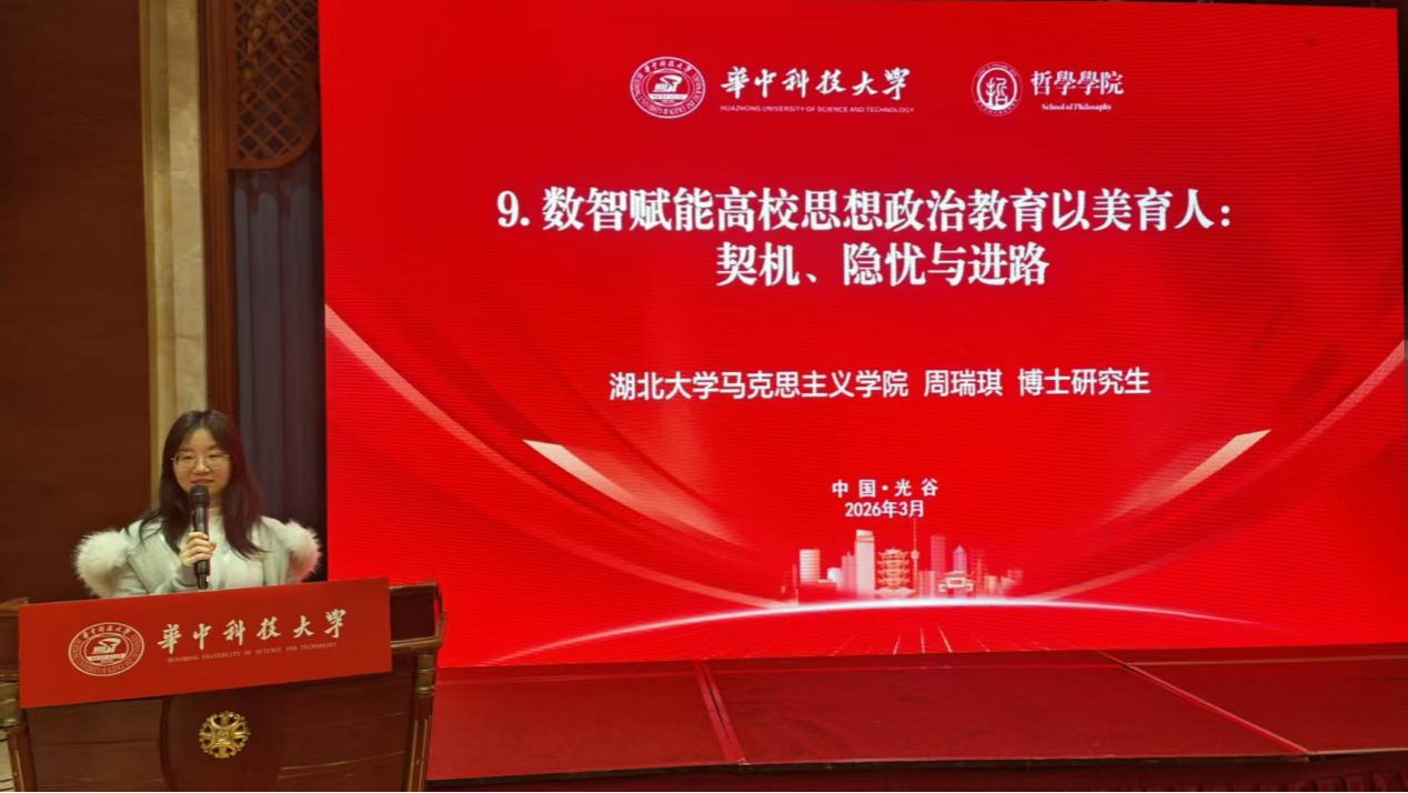 杨海军副教授、博士生周瑞琪作为分会场一的发言人,分别就“人工智能赋能思想政治教育的机遇与挑战”和“数智赋能高校思想政治教育以美育人”等主题进行发言并参与讨论。杨海军副教授同时担任分会场四的主持人,并在闭幕式上作为分会场代表进行总结性发言。