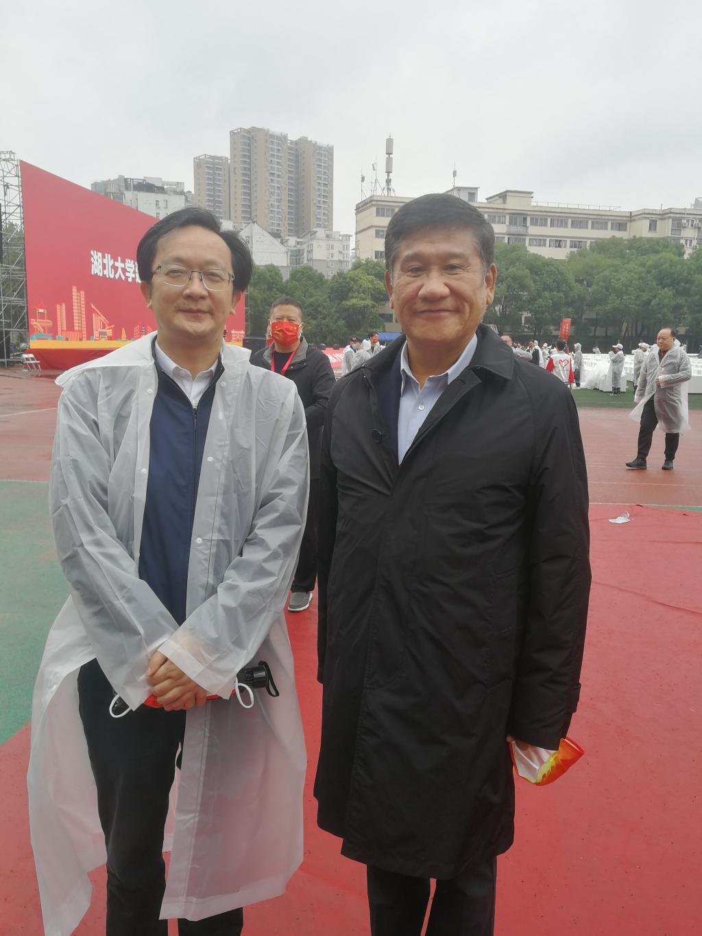 院长熊友华在大会会场,与77级政教专业校友李宪生亲切交谈,并征求了李宪生校友对瓜子tv