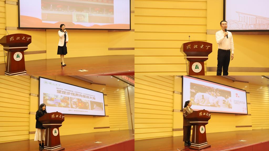 2019级播音与主持艺术专业学生司雨铮用丰富的图片和具有感染力的音乐,诠释了2020年武汉疫情背景下医疗战士们“舍小我,为大家”的伟大精神;2020级大数据经济专业学生邓范宇果讲述汶川大地震中幸存男孩程强受救援部队空15的感召,立志成为空降兵的故事,她号召大学生们听党话、感党恩、跟党走,同心向党,奔赴远方;“红船您好!我是辽宁舰”,2019级高分子材料与工程专业学生陈龙从南湖游船讲到南海巨舰,别出心裁地用两船对话的形式讲述建党百年来中国的发展变化;2019级思想政治教育专业学生依力扎提·依明讲述陈潭秋在新疆组织建设抗日民族统一战线的故事,“陈潭秋用热血和生命写就了共产党人的如山气节,成了敌人永远无法攻破的堡垒”;2020级文物与博物馆专业学生刘浩乐以《国际歌》为引,以实地考察的资料和图片,向大家展现武汉党史。