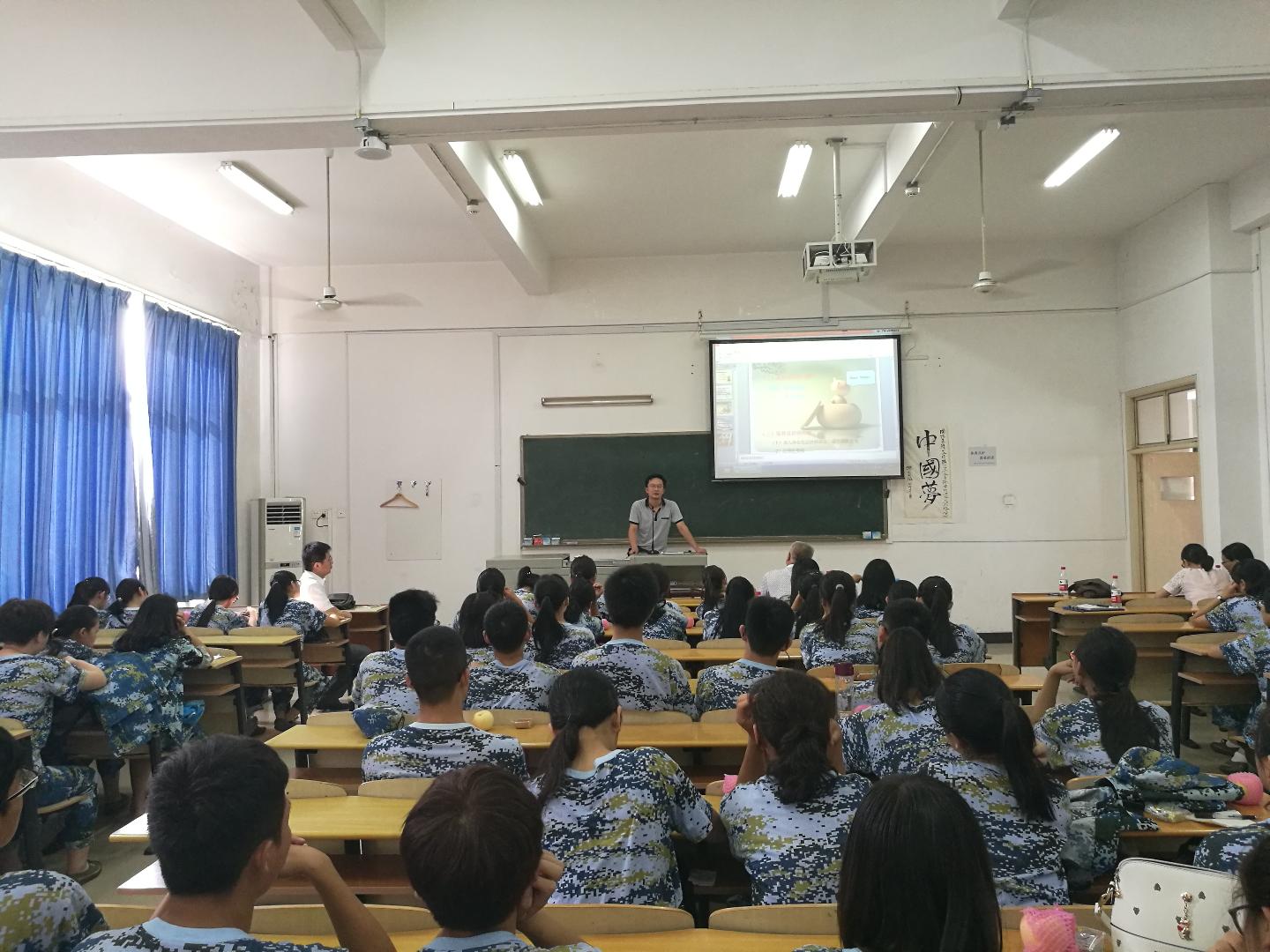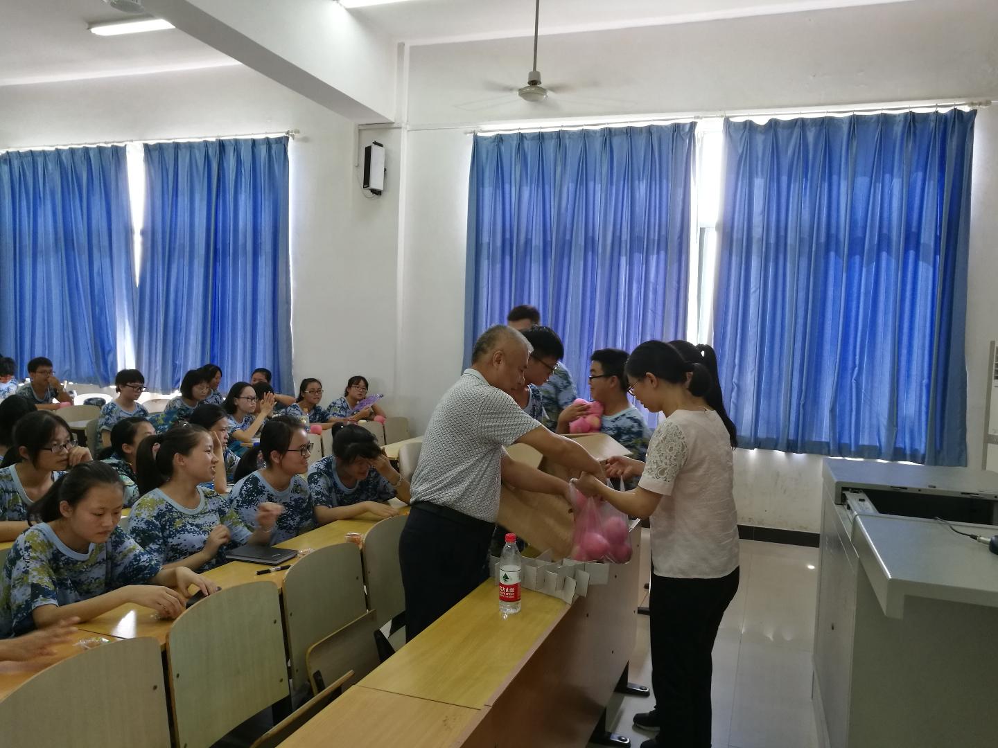 党委书记汤德森带领教师代表慰问正在军训中的16级思想政治教育专业新生,并召开主题班会,共话大学生活的美好与憧憬。副院长熊友华、辅导员邹浩、通识教育瓜子tv