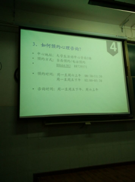 高老师的讲座涉及四个方面,开篇呈现现实生活中研究生自杀案例,让同学们对心理健康问题引起足够重视。其次从心理学专业知识的视角给我们讲述了心理健康及其影响因素,用科学的数据说到研究生心理健康的研究结果,调侃同学们要好好享受研一的幸福时光。还从学业、就业、人际交往、经济、恋爱、婚姻等说明影响心理健康的因素,这里着重说到研究生三年要对自己学业有个清晰的规划,避免陷入研二、研三的焦虑状态。再次给我们分析了研究生常见的心理问题并提出心理健康的促进策略:一、修正认知观念;二、合理宣泄情绪;三、主动解决问题;四、提高人际交往水平,运用社会支持系统;五、寻求心理救助。最后高老师给我们讲述了心理咨询对个人成长的重要性,告诉我们预约心理咨询的时间、地点及其方式,让我们时时关注自身及其周边同学的心理状况,在完成学业的同时也要保持身心的健康发展。
