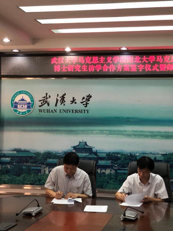 博士研究生赴武汉大学访学方案》上签字,并就后续访学合作交换意见,签字仪式在热烈的掌声中完美结束。