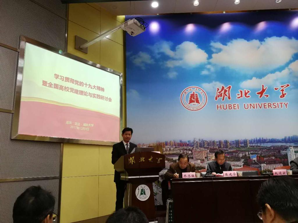 的贺祥林教授、中南民族大学的刘启春教授等分别以《试论习近平新时代党的建设思想》、《全面从严治党的新时代视角》、《创新高校党内监督机制》、《习近平新时代党建思想的特征》、《新时代进程中社会主流意识形态建设的逻辑》、《习近平提升党在高校文化领导权的思想》、《思想建党和制度治党同向发力》及《全面从严治党的问题导向》等为题作了主题发言。同时,与会的专家学者还就“学习贯彻党的十九大精神”、“高校党建与思想政治工作”、“改进和加强高校思想政治理论课教育教学”等主题进行了分组讨论和深入研讨。瓜子tv