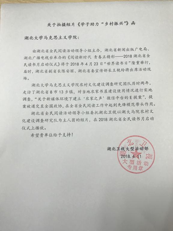 农村文化建设调研团队为主人翁的短片,着重介绍了该团队在探索农家书屋的建设,为“全民阅读”在农村的普及所贡献的青春力量。