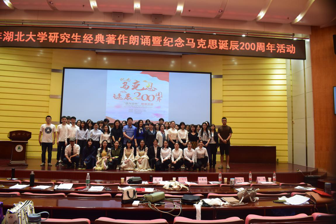 研究生经典著作朗诵暨纪念马克思诞辰200周年“颂与您听”活动,在会议中心思睿厅成功举办。研究生院党委研究生工作部副部长叶秀娟、新闻传播学副院长胡远珍和张帆老师,瓜子tv