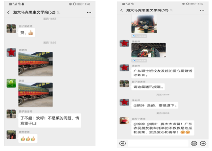 的教师们被学生们的行动深深感动,纷纷通过网络平台向学生们表达了敬意。田子渝教授连呼:“了不起!欢呼!不是菜的问题,情意重于山!”看到同学们发来的现场采摘、分装、装运的照片,徐方平院长感叹:“广东学生、农民装车托举的不仅仅是冬瓜与水果,更是爱心和善举。”