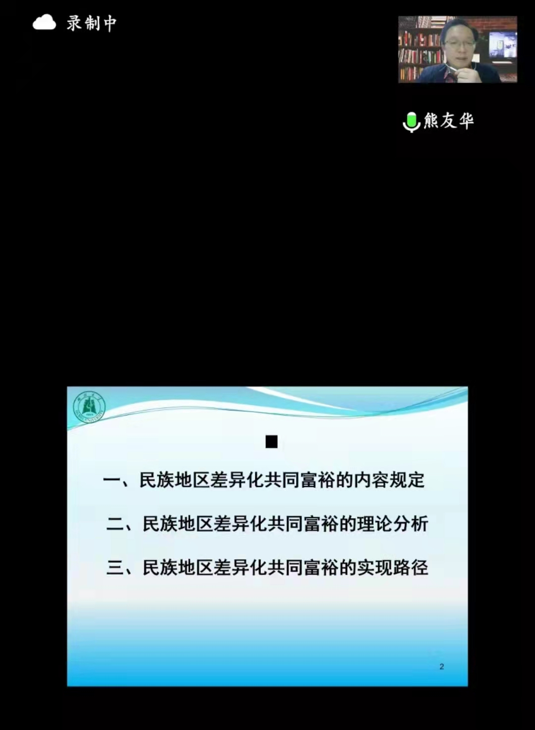 院长熊友华教授在第三分论坛作了题为《民族地区实现共同富裕的差异化路径问题》的发言,梳理了民族地区差异化共同富裕的内容规定,对民族地区差异化共同富裕进行了理论分析,并指出共同富裕是存在差异化发展的。基于此观点,熊院长给出了现实解决的路径,即要加强党对民族工作的集中统一领导、发挥民族地区的特色优势、加强各民族的交流合作等。他的报告获得了与会专家的高度评价。