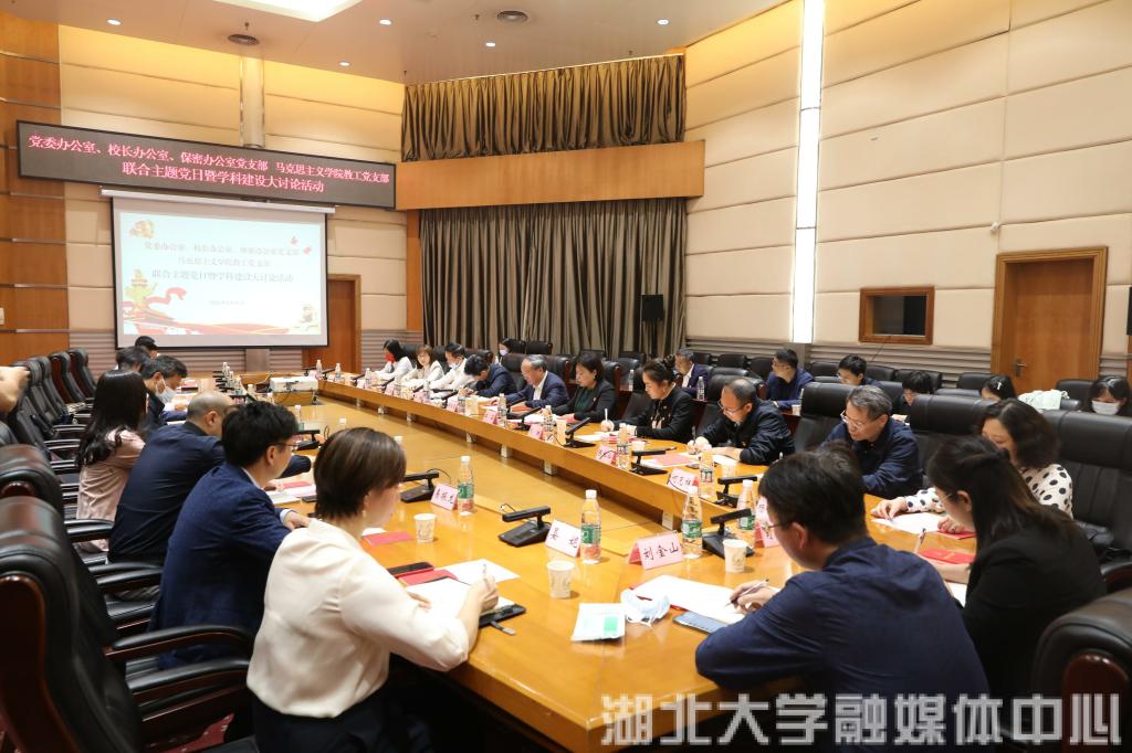 5月11日下午,马院教工党支部与校党委办公室、校长办公室、保密办公室党支部联合开展的主题党日暨学科建设大讨论活动在校会议中心思齐厅举行。校党委书记谢红星,校党委常委李莉,校党办、校办、保密办党支部全体党员,马院领导班子成员、教师代表、学生代表参加活动。活动由校党委常委,党委办公室、校长办公室、保密办公室党支部书记李莉主持。