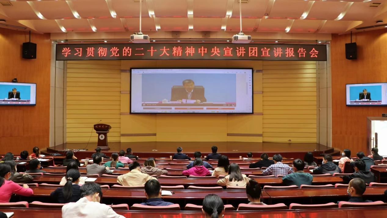 在学校会议中心思睿厅集中收看党的二十大精神中央宣讲报告线上直播,认真聆听党的二十大精神中央宣讲团成员,教育部党组书记、部长怀进鹏宣讲党的二十大精神。瓜子tv