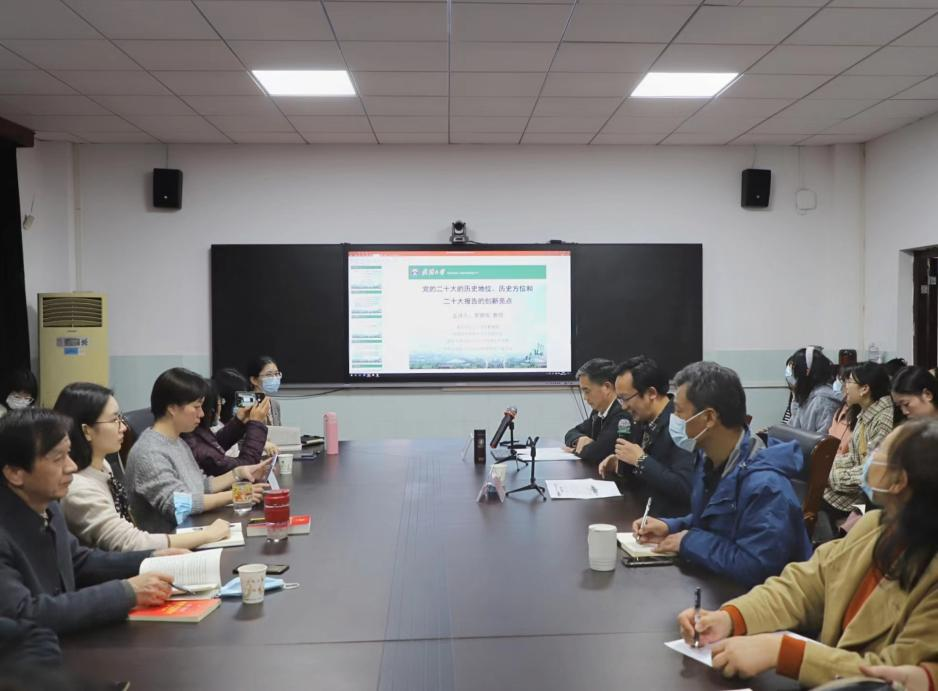 袁银传教授从历史地位、历史方位和创新亮点三个方面对党的二十大报告进行了深入的理论阐释。他指出,从历史地位来看,党的二十大是在我国迈上全面建设社会主义现代化国家新征程、向第二个百年奋斗目标进军的关键时刻召开的一次十分重要的大会;从历史方位来看,党的二十大是在当今百年未有之大变局加速演进、党带领全国各族人民全面推进中华民族伟大复兴的新形势下召开的一次具有深远历史意义的大会;从创新亮点来看,袁银传教授认为党的二十大报告突出了马克思主义在意识形态领域指导地位的极端重要性、突出了人才强国的重要性、突出了全面依法治国的重要性、突出了国家安全的重要性。