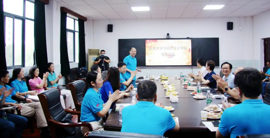 ,积极建言献策,共同聚力于马院未来的建设和发展。郭劲松教授、徐信华教授也以师兄、师弟的身份与校友们尽情交流与分享马院师生的故事。大家相谈甚欢,其乐融融。