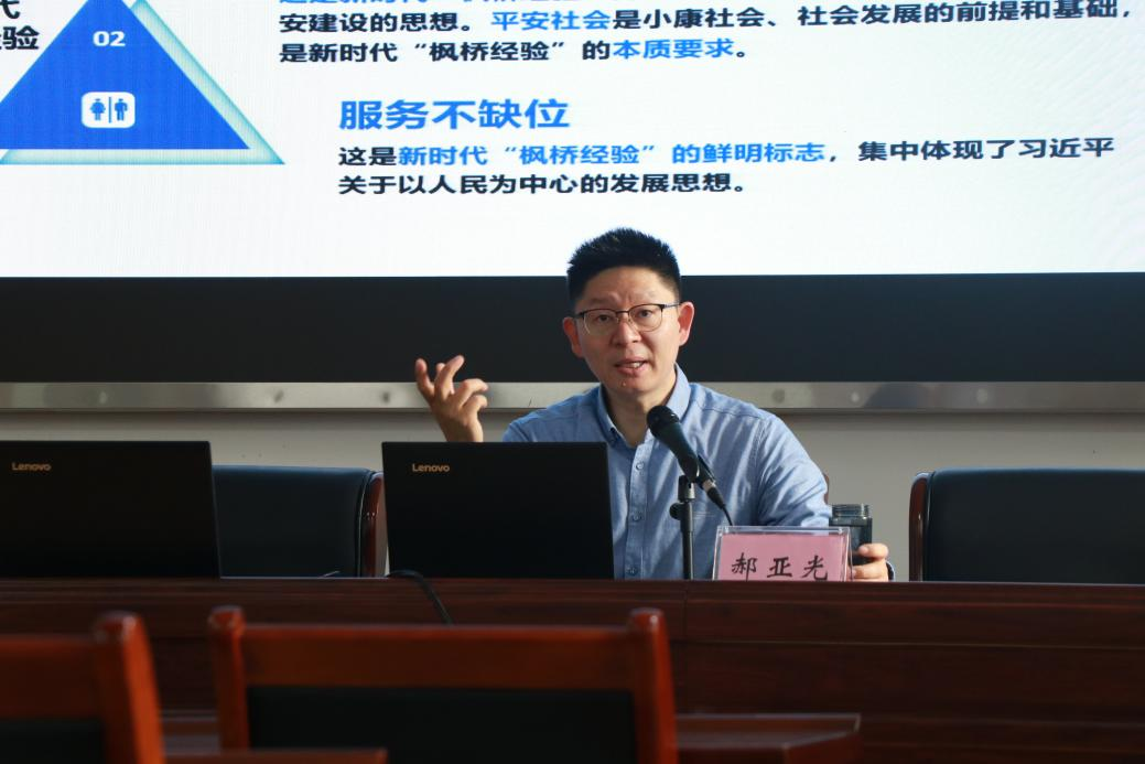郝亚光教授围绕“枫桥经验”的发展历程,从“枫桥经验”的基本内容、新时代“枫桥经验”的新内涵、重视推广“枫桥经验”的时代背景以及新时代如何建构基层多元纠纷解决机制坚持和发展“枫桥经验”等四个方面进行了阐述。郝亚光教授指出,“枫桥经验”源自浙江,源自公安战线,源自治安治理。新时代,要加强和创新基层社会治理,坚持党的群众路线,紧紧依靠群众,切实把矛盾化解在基层,维护好社会稳定。