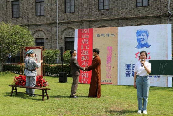 联合武汉革命博物馆,借助农讲所场地,以“忆峥嵘岁月,颂盛世华章”为主题,在武昌农讲所大操场隆重举办了《中国近现代史纲要》课程及“瓜子tv