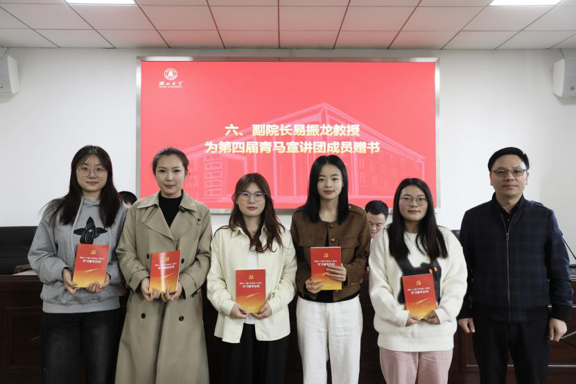 (图为副院长易振龙为第四届青马宣讲团成员赠书)