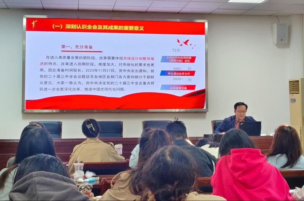 11月8日,一场以“党的二十届三中全会精神学习”为主题的党课在二号教学楼410会议室顺利举行。本次党课由瓜子tv