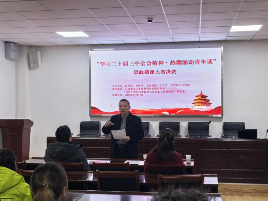 联合学校相关职能部门精心组织、统筹安排,于2024年12月11日下午,成功举行“学习三中全会精神·热潮涌动青年谈”微课大赛——《习近平新时代中国特色社会主义思想概论》课程实践教学展示决赛。