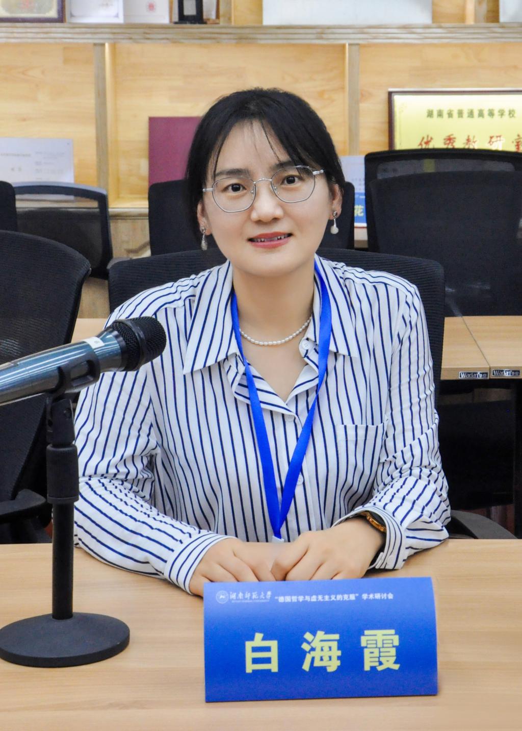 白海霞,女,中共党员,1984年9月出生,哲学博士。2004年至2008年就读于南昌大学人文瓜子tv 哲学专业,获得哲学学士学位;2008年至2016年就读于武汉大学哲学瓜子tv 外国哲学专业,先后获得哲学硕士学位和哲学博士学位。主要研究方向为德国哲学、伦理学、国外马克思主义。现主要讲授本科生《马克思主义哲学基本原理》、《思想道德修养与法律基础》等课程。参与过多项国家级及省部级课题,在《道德与文明》、《哲学评论》、《理论月刊》等期刊上发表多篇文章。